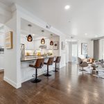 This condo has been thoughtfully updated with modern touches, including high-end laminate flooring throughout, fresh paint, and upgraded light fixtures, creating an inviting and stylish atmosphere. Escape to the primary suite offering a spa-like bathroom with double vanity and walk-in closet with built-in organizers. The open kitchen is a chef’s dream, featuring high-end appliances and quartz countertops that seamlessly blend functionality with elegance. Impress your guests and elevate your entertaining experience with the dedicated designer wine storage, a perfect addition for enthusiasts and hosts alike.