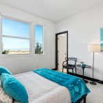 Each of the 3 bedrooms has an en-suite bathroom, providing the utmost in flexibility. Upstairs the primary bedroom features a walk-in closet plus spa-like bath with dual sinks and oversized glass enclosed shower. A full-sized stackable washer and dryer is conveniently located between the 2 upstairs bedrooms. Large windows provide tons of natural light and delightful views in all directions including the walkway/greenbelt directly across from the unit. You can also catch a glimpse of the San Francisco city skyline and the iconic Port of Oakland cranes from the top floor bedroom window.