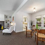 Enter into the cozy living room with brick fireplace and built-in shelving. The adjoining dining room leads into the eat-in kitchen or step out to the back yard patio through a pair of French doors. Fully fenced backyard with large fig tree gives lovely green shade on those warms days. Spacious family room off the kitchen with second fireplace is perfect for relaxing. Three bedrooms provide plenty of flexibility for living and working from home. One full bathroom plus a second toilet next to the laundry room. Two driveways on either side provide plenty of off-street parking.