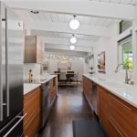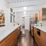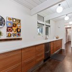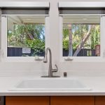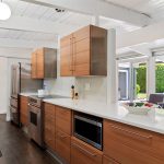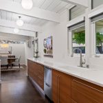 Just a few of the numerous notable upgrades includes a central forced air A/C and heating system for the rear of the home. The newer, still under warranty foam roof, double-paned windows, and Smith & Noble solar shades throughout the home allow for temperature retention while creating an energy efficiency uncommon in most Eichlers. An elegantly updated kitchen with expansive quartz countertops, newer stainless-steel appliances including 2-drawer Fisher + Paykel dishwasher, creates the perfect centerpiece of the home’s interior.