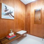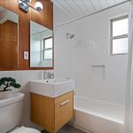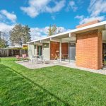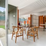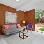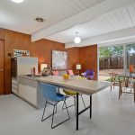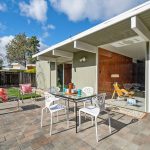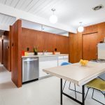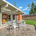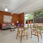 Recently and tastefully remodeled, the home’s mid-century architectural character was not compromised in the process. The bathrooms have been fully updated to meet today’s needs and standards while the rest of the home has been refreshed with the addition of new vinyl tile flooring, new interior mahogany wood paneling, new mahogany doors and hardware, fresh paint both inside and out, as well as a fully restored original Eichler kitchen. Genuine details abound for the mid-century modern enthusiast such as the refurbished built-in Thermador oven and cooktop, refinished sliding door cabinets, Eichler’s signature swing-out kitchen table, and globe lighting throughout. The outside of the home received plenty of attention too with new backyard landscaping including fresh sod grass, patio, gravel aprons, decomposed granite paths, a block retaining wall, an automated sprinkler system, and a French drain that runs the entirety of the yard out onto the street.