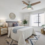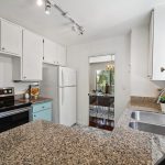 The cheerful kitchen is a true highlight, featuring gleaming granite countertops, custom floor tiles, attached eating nook, and large storage pantry. Both bedrooms are generously sized with brand new carpeting. The primary suite offers a built-in desk, perfect when working from home. Plus a roomy walk-in closet and newly remodeled spa-like ensuite bathroom complete with step-in shower, dual vanities, and modern fixtures. While the second bedroom and additional full bathroom provide ample space for guests or family members. In-unit laundry and sleek ceiling fans throughout are the epitome of comfort and convenience.