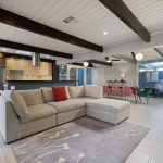 Ideally located in a quiet cul-de-sac, the thoughtfully designed 1,577 square foot (per tax records) floor plan includes 3 bedrooms, 2 updated full baths, and a vibrantly remodeled kitchen with stainless steel appliances and a center island that leads directly to the living, dining, and family rooms. Tile flooring throughout seamlessly combines the various areas of the home and unlike many of its mid-century modern counterparts that lack in modern conveniences and energy efficiency, this home is a clear standout.