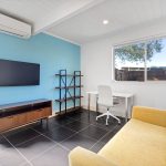 An ambient and efficient interior is ensured through double pane windows, as well as a combination of whole house heating and cooling options that include radiant floor heating, forced air ceiling AC/heating, Mitsubishi mini-splits in the bedrooms, and a traditional wood burning fireplace. The interior lighting has been recessed throughout the home and all closets come equipped with built-in organizers. Outdoor living options abound thanks to the private atrium, spacious and welcoming front and side yards, and the beautifully hardscaped backyard that comes equipped with a built-in BBQ, fire-pit and ample sitting areas. The low maintenance landscaping is easily controlled via a WIFI enabled watering system.