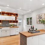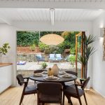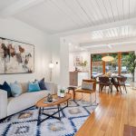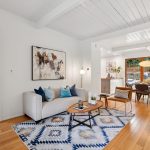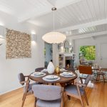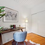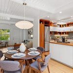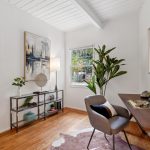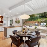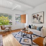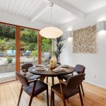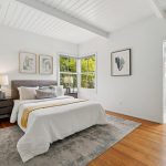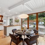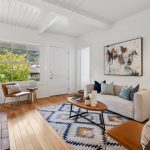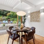 Masterfully remodeled 3-bedroom, 2-bathroom mid-century modern, blending timeless design with thoughtful upgrades. Exposed beams, tongue & groove ceilings, and rich hardwood floors set a warm, sophisticated tone. The chef’s kitchen is a showstopper with Miele counter depth fridge, Wolf gas range, custom cabinetry, butcher block counters, Heath ceramic backsplash tiles, and a skylight that fills the space with natural light.