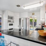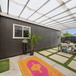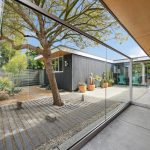 Entertain with ease under the covered patio, perfect for outdoor dining and year-round gatherings. The low-maintenance, drought-tolerant landscaping is accented by custom lighting to set the mood after sunset. A striking custom glass front entry gate with buzzer entry ensures privacy while making an unforgettable first impression. Even the updated glass-paneled garage door and foam roof nod to the home’s architectural pedigree. While the spacious attached two-car finished garage with workshop adds everyday convenience.