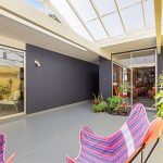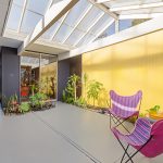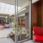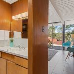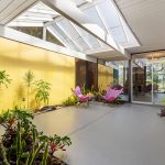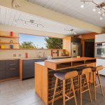 The much beloved interior atrium has been covered to allow for year-round enjoyment and its lush garden can be accessed from almost every part of the home. The indoor/outdoor lifestyle continues through the back of the home that leads directly to a spacious backyard with extra privacy and no adjoining neighbors to the rear. Perfect for entertaining or just enjoying time with family and friends. A newer foam roof allows for improved insulation throughout the year and a thoughtfully remodeled kitchen stays true to the home’s aesthetic while providing its owners with the modern conveniences to which we’ve all become accustomed. The kitchen cabinetry is custom, the tile backsplash is Heath, and the countertops are Dekton. The addition of a pantry and a hidden pullout pegboard cabinet add much needed additional storage space to the kitchen. The floors consist of porcelain tile throughout and at 1,834 SF (per public records) the home’s 4 bedrooms and 2 full baths allow for ample space and functionality which has become all the more important in today’s work and teach from home lifestyle.