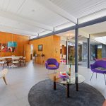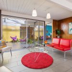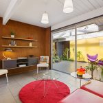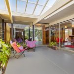 Thanks to its striking exterior color composition and unique blend of materials, this Eichler is truly a neighborhood standout. Located in Castro Valley’s Greenridge community and built in 1960, the home’s continuing modern allure is a testament to the thoughtful collaboration between renowned builder Joseph Eichler and architects Jones and Emmons. To this day atrium model Eichlers remain some of the most sought after examples of mid-century modern architecture. And true to its architectural significance, much of the home’s interior still showcases the architect’s original designs and functionality; from mahogany wood paneling throughout and fully functioning radiant heating system, to the floor-to-ceiling glass walls and clerestory windows that allow natural sunlight to drench the home’s interior.