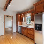 Leona Heights mid-century modern home with exposed beams and tongue and groove ceilings throughout. Updated kitchen with stainless steel appliances and new quartz counter tops leads out to the spacious, beautifully landscaped, and private backyard under a canopy of majestic oak trees. Relax in the hot tub with views of the Oakland hills and listen to the gently trickling waterwall. Enjoy the recently remodeled spa-like bathroom with double shower heads.